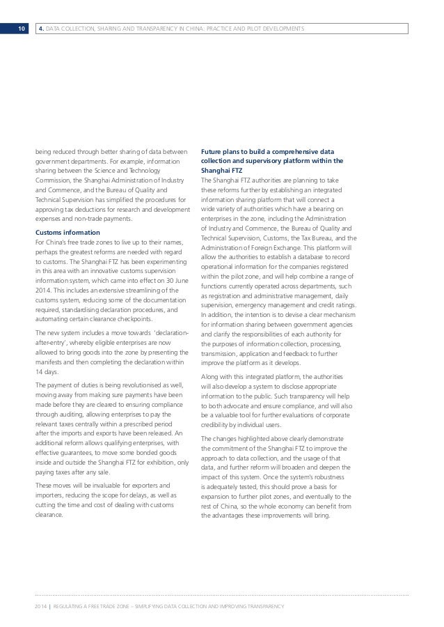 The zone, officially the China (Shanghai) Pilot Free Trade Zone, is seen as a key The first is liberalization of traditional trading businesses to achieve free imports, storage, re-exports, the’paid’tax ... View Doc